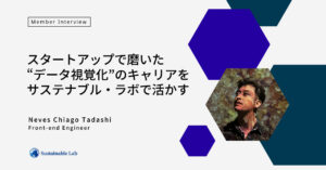 スタートアップでの経験を重ねながら、ずっと「データを見える化する」領域に携わってきたTadashiさん。サステナブル・ラボでは、コアプロダクトのアジャイル開発に加え、社内ツールにも関わりながら、プロダクトを前に進めています。